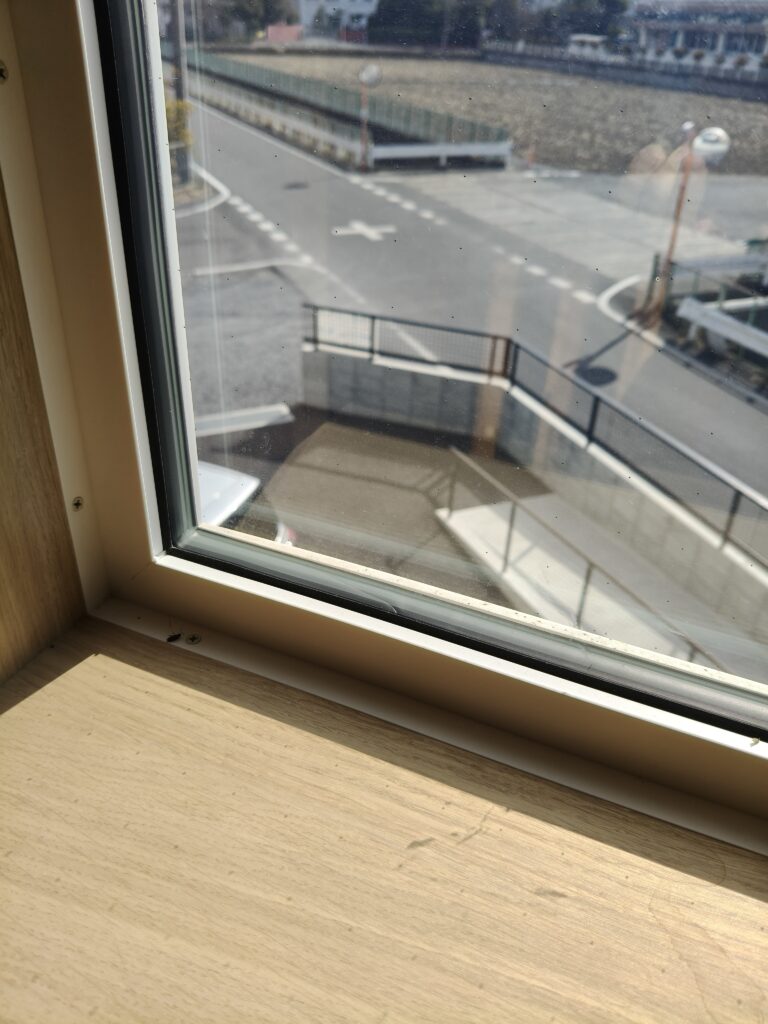窓は、南面については冬の日射取得を重視して、ペアガラスの樹脂サッシの窓を採用しました。夏は直射日光が入りますが、ハニカムブラインドで日射を遮ります。あとの3面はトリプルガラス樹脂サッシの窓になっています。窓を見ると、断熱材がたくさん入っているのがわかりますね。
