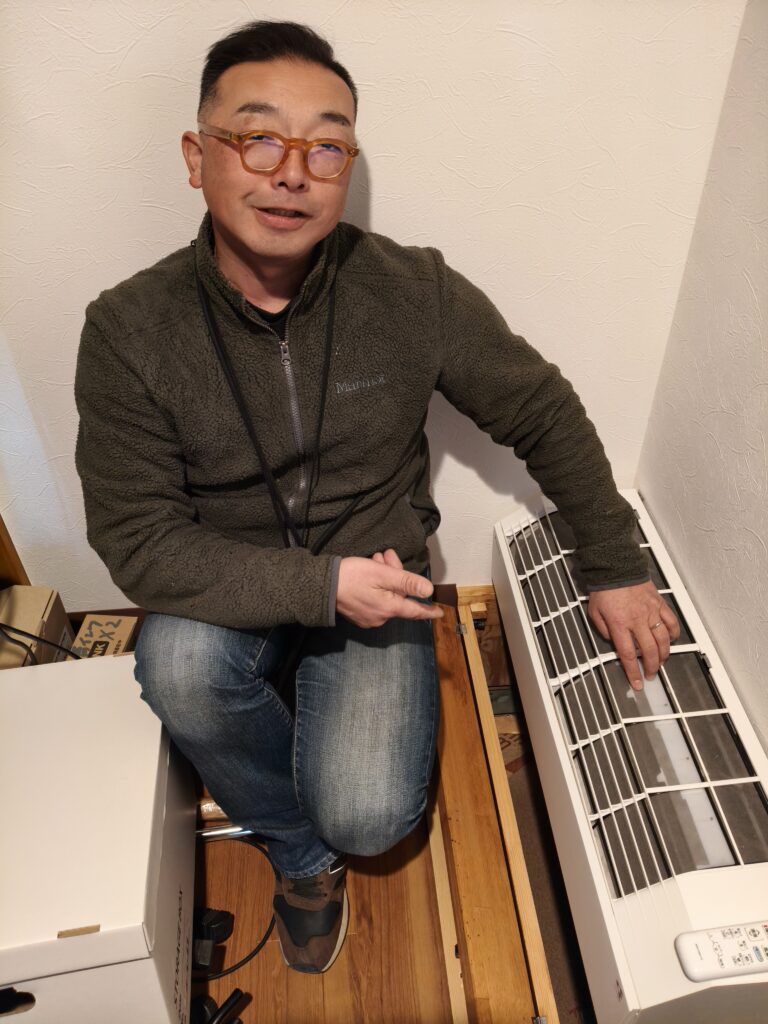 使用していた暖房器具はエアコン5台に加えて、石油ストーブを2台持ち込んでいました。暖房しても熱が上に入ってしまうので、エネルギー効率が悪いし、快適ではない状態でした。