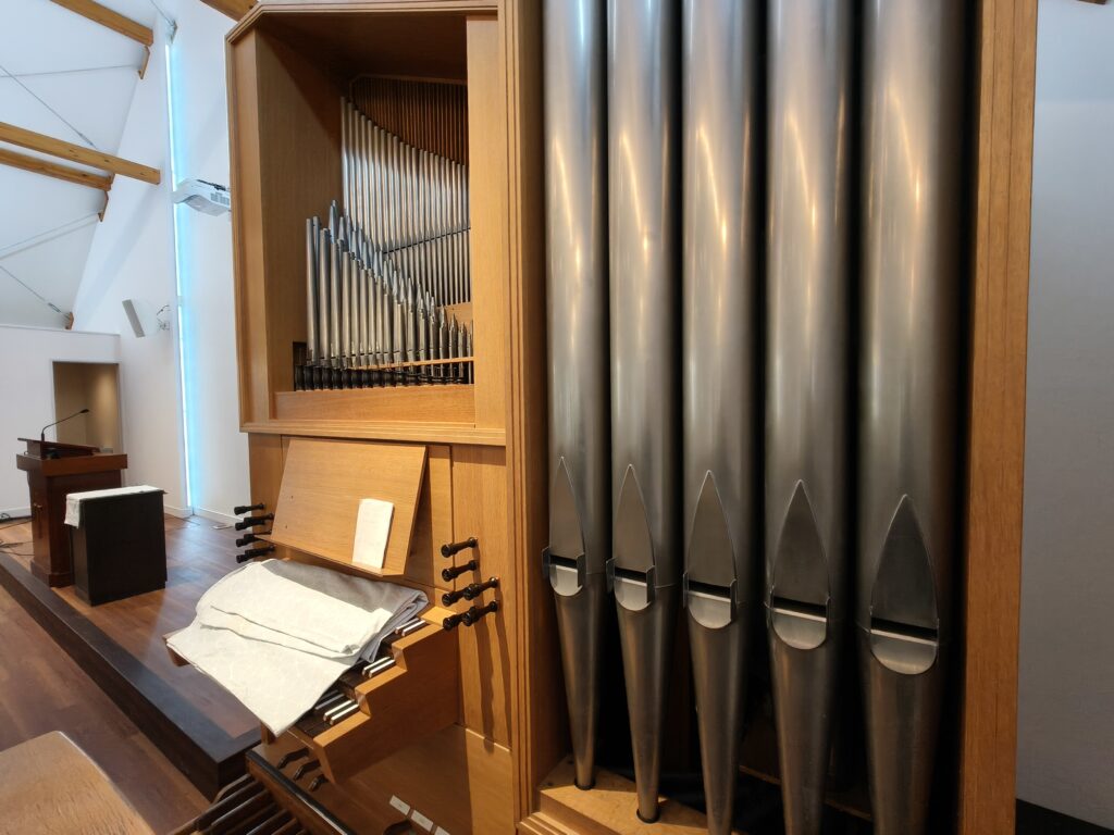 新築後は、外の騒音も気にならなくなり、中の音も漏れにくくなりました。さらにパイプオルガンの音の反響も良くなったと評判です。